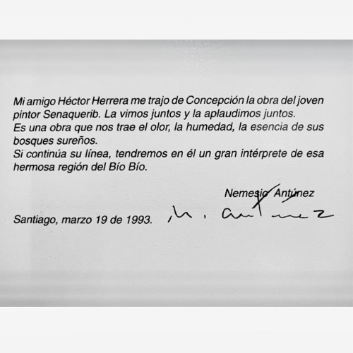 My friend Héctor Herrera brought from Concepción the work of Senaquerib, the young painter. We saw it together, and we clapped together